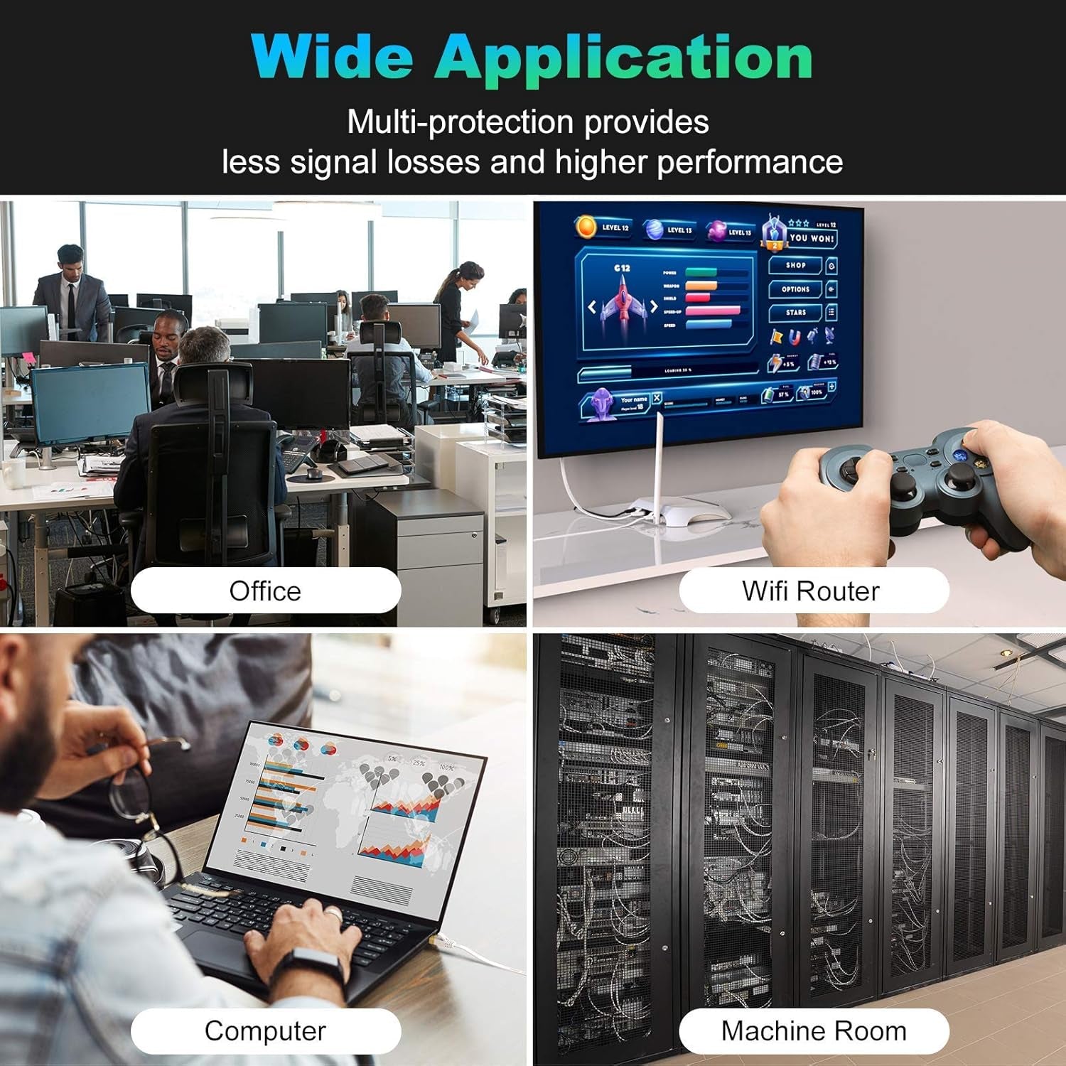 The 8P8C gold-plated contacts of Cat6 lan cable fit snugly into sockets so that provide a faster and more stable connection.